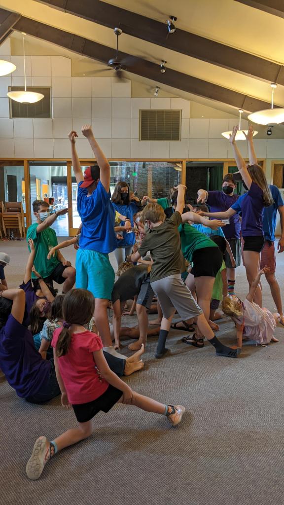 Through physical games, acrobatics, partnering, theater games, and music participants strengthen