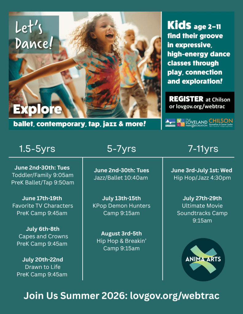 Summer Chilson Recreation Center Dance Classes and Camps: June 2nd-August 6th, 2026