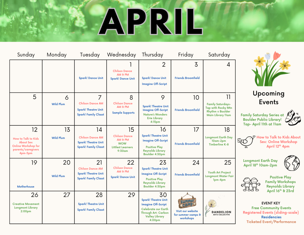 Join us for interactive movement and arts activities at the biggest Earth Day celebration in Longmont! We’re thrilled to be back at Sustainable Resilient Longmont’s annual Earth Day celebration.